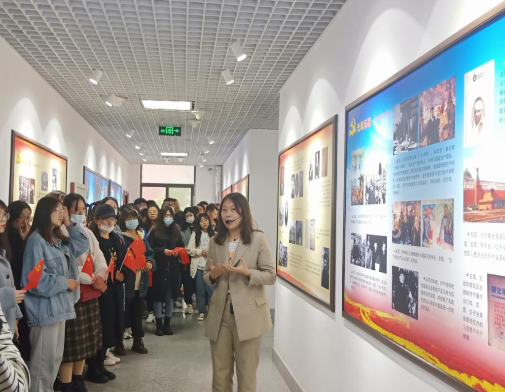 本次红色文化长廊打卡学习活动,特邀马克思主义学院邱楚珈老师莅临现场,为同学们讲解红色文化发展历程。邱老师从马克思、恩格斯发表《共产党宣言》讲起,讲述了马克思主义在中国大地扎根结果的全过程。在邱老师的讲解下,全体同学仔细观看中国共产党百年发展历史展,认真聆听讲解。一个个感人至深的故事、一幅幅弥足珍贵的照片、一段段慷慨激昂的文字让大家深刻体会到了革命道路的艰难曲折、了解到了革命先辈的英雄事迹、感受到了社会主义伟大事业的波澜壮阔