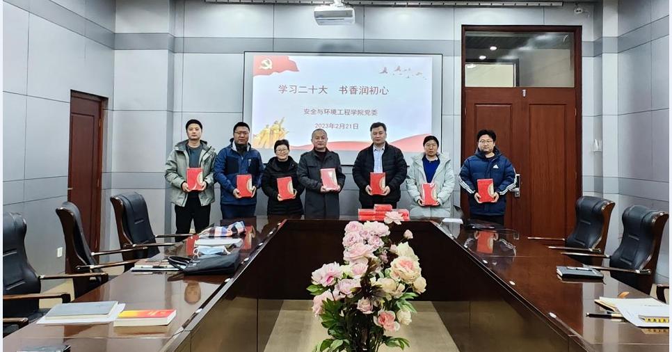 为持续深入学习宣传贯彻党的二十大精神拓展学习渠道丰富学习内容激励和引导全体党员系统学全面学深入学用浓郁书香凝聚精神力量221安全与环境工程学院党委于j4-321319会议室集中为党员发放学习书籍为党员补足精神之钙