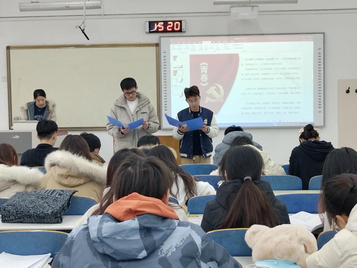活动伊始,冯睿、徐伟豪同志诵读《青春》和《敬告青年》:“为世界进文明,为人类造幸福,以青春之我,创建青春之家庭,青春之国家,青春之民族……”通过诵读经典,提升自身素质学习好、宣传好党史,勤思考、常总结,让广大党员同志更好的奋进新征程、建功新时代。