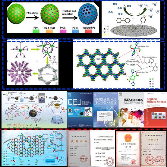 近年来,在国家自然科学基金、山东省自然基金等项目的支持下,团队在环境功能材料方面取得了系列创新性成果。在Chem Eng J、J Hazard Mater、Bioresource Technol、Appl Surf Sci等知名学术期刊发表代表性论文30余篇;获生物质循环流化床分级热解气化与高温除焦油除尘一体化工艺、Membrane-free microbial fuel cell combined catalytic membrane cathode system for coking wastewater treatment等国内外专利授权30余项;获冶金科学技术一等奖、绿色矿山科学技术一等奖、国家海洋科学技术一等奖、中国商业联合会科技进步二等奖等奖项;相关成果在社会经济绿色发展方面有典型应用,如团队基于地铁土建工程构建的碳排放强度模型在青岛地铁六号线工程已实际应用,并据此提出了低碳施工策略,为国家双碳政策的落实提供了支持。