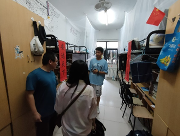 交流会后,两位老师共同参观两个班级的男生宿舍。各宿舍均展现出了同学们良好的住宿习惯,在宿舍卫生、物品摆放等方面做到了干净整齐,未出现脏乱差的情况。两位老师对男同学们的宿舍表示非常满意,并鼓励大家继续保持。