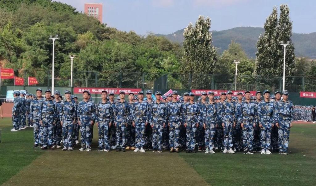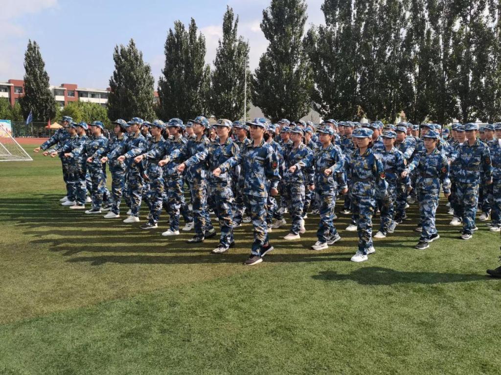 高地绿茵场上,一群身穿迷彩的活力青年整齐地站着军姿。今天的训练迎来一个新的挑战——齐步走。