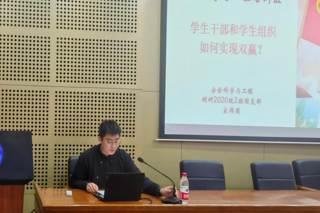 会上,兼职辅导员宋伟国以“学生干部和学生组织如何实现双赢”为题为全体学生干部做了经验分享。他表示,学生干部要以全面发展为目标、学风建设为核心,做到“五种意识能力”和“三次思考”,带动学生集体提升能力,实现个人和集体的双赢。他还分享了带领团支部荣获2021年“全国煤炭行业五四红旗团支部”的成功经验和经典做法,他说,学生工作不是成绩落后的借口与理由,优秀的学习成绩更是学生干部尽职尽责、自身严格要求的体现。最后,他用“道阻且长,行则将至;行而不辍,未来可期”鼓励全体学生干部不断提升自己,做好本职工作。