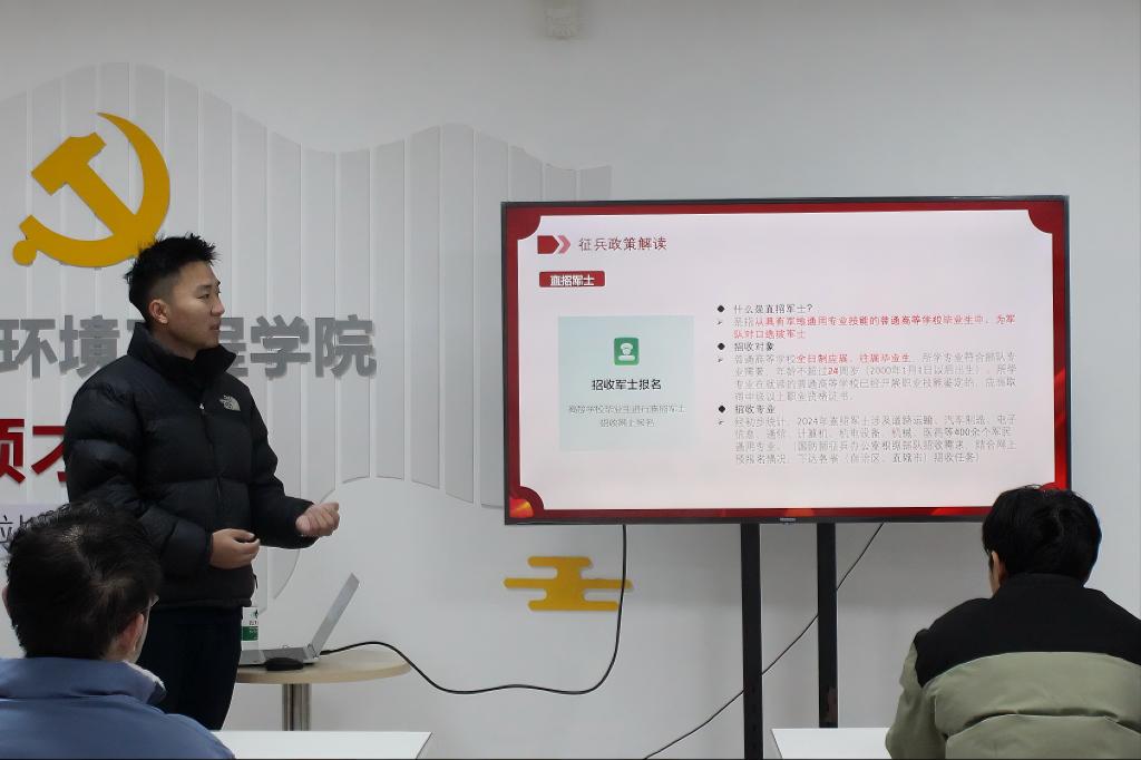 张凯榕从直招军士政策、直招军士与义务兵的区别、大学生退役士兵的保研政策等多个方面对国家大学生征兵入伍政策进行详细的解读,并就自身经历跟同学们分享了自己的入伍缘由以及部队生活,让同学们对于军营有了更加全面形象的了解。他鼓励满足条件的同学们响应国家征兵号召,提前规划,在毕业之际踊跃投身军旅,征兵不仅是国家的一项重要政策,也是每个公民应尽的责任和义务。宣讲结束后,同学们对参军入伍有了更为透彻的认知,并深切领悟到当下安稳生活的来之不易,同学们纷纷表示希望自己能够为国家的安全和发展贡献力量。