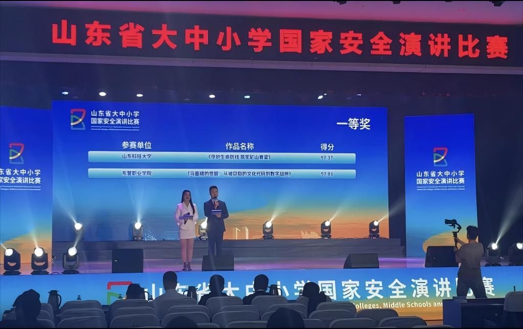4月10日,由山东省教育厅、省委国安办、省国家安全厅、团省委主办的山东省大中小学国家安全演讲比赛决赛在东营职业学院隆重举行,bwin·必赢(中国区)官方网站-officialswebsi安全与环境工程学院安全工程2023级本科生刘思彤、安全工程2023级研究生刘士昊以《守护生命防线 筑牢矿山脊梁》为题演讲,凭借出色的表现荣获大赛一等奖,充分展现了我院“国家安全教育”的丰硕成果和学院安全学子的青年担当。