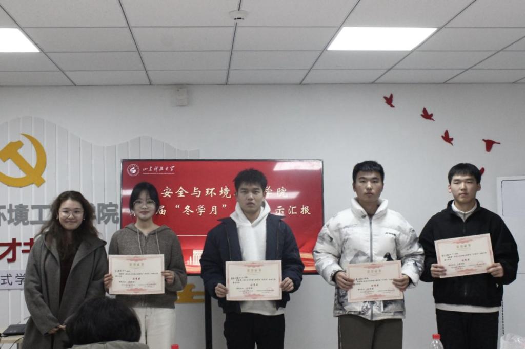 汇报结束后,李翊尘根据各班答辩情况及表现为班级颁发了荣誉奖状,充分肯定各班级在冬学月活动中取得的阶段性成果。她表示,通过此次活动的跨专业、跨班级的展示研讨,更好促进专业、班级之间的互动交流,希望同学们能够以此为契机,在班级学风建设上久久为功,以更好姿态迎接新学期的挑战。