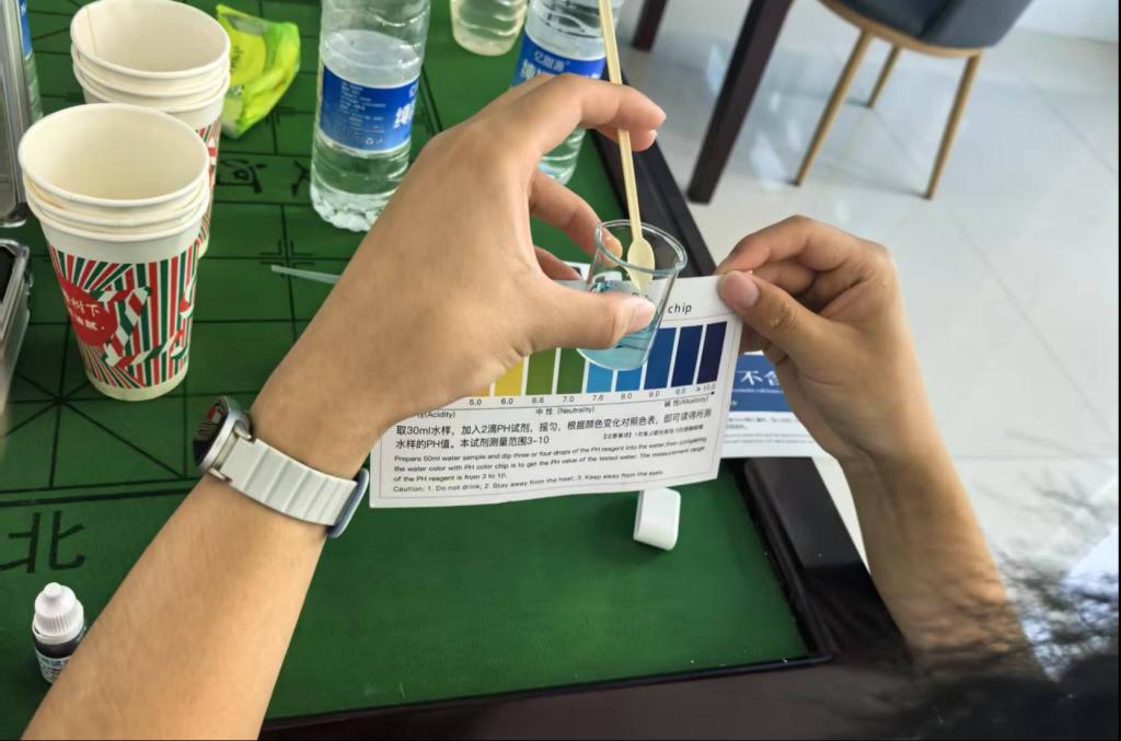 “调研是基础,应用是关键”。团队成员收集各类用水样本开展水质分析。经过系统梳理,团队结合专业知识撰写水资源调研报告2万余字,并正式提交至当地政府部门,为后续乡村节水设施改造、水环境精准治理提供重要的数据支撑和决策参考。
