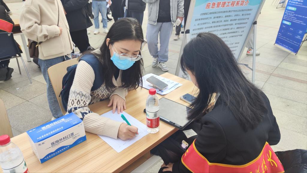 双选会现场气氛热烈,百余名安全学子以昂扬的精神面貌参加到应聘中,主动投递简历,积极了解招聘需求,热情介绍自身情况,力求找寻适合自己的工作。他们穿梭在各个企业服务台之间,就个人意向、未来规划等问题与企业负责人深入交流,校园大使们也认真细心的为同学们解答有关就业、薪酬等方面的疑惑。不少同学在双选会现场找到了自己感兴趣的职业,并留下了个人简历,为毕业后做准备。期间,党委副书记兼副院长王建友、团委老师诸葛长华深入双选会现场,与企业亲切交流,了解用人单位状况和招聘需求,并鼓励同学们积极与企业负责人交流,认真了解企业相关信息,通过校园大使的专场宣讲,进一步增进对用人单位的了解。