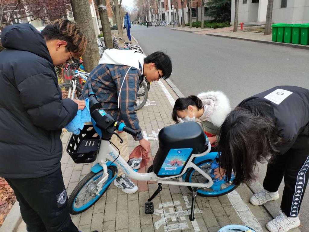 活动于上午八点半准时开始,虽然本次活动处于冬季,但却阻挡不了志愿者们的热情。各地点负责人将参与人员分成小组,前往不同的单车停靠地点。活动过程中,志愿者们都认真整理共享单车,即便冬季的水冰凉,但志愿者们依然认真地劳动着。经过两个多小时的辛勤劳动,共享单车陆续回归原位,看着一排排整齐、有序的共享单车摆放路旁,路过的同学都伸出了大拇指并表示也想加入到这样的志愿者队伍,为学校的文明创建奉献自己的一点力量。