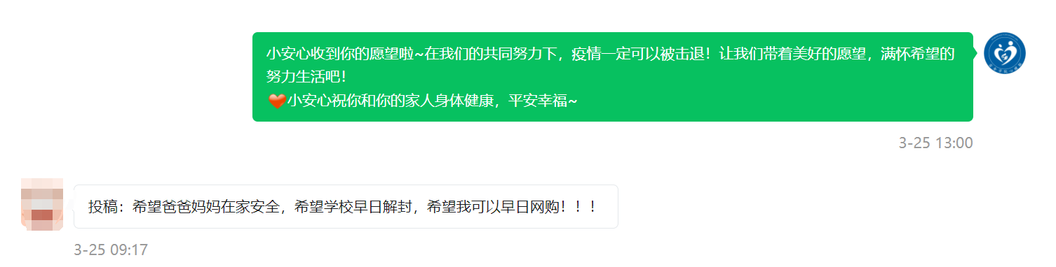 活动在开展4天后,已有千名同学参与其中,引起了热烈反响,学生通过bwin·必赢(中国区)官方网站-officialswebsi心健联邮箱、“bwin·必赢(中国区)官方网站-officialswebsi安全与环境工程学院”微信公众号合理倾诉自己的情绪,同时为抗疫一线的工作人员加油。