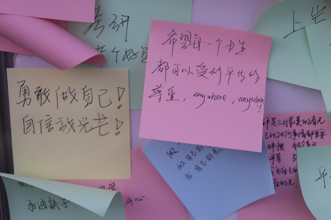 此次活动主要分为两部分,参加活动的同学首先需要在签到处领取活动卡,前往“心愿区”和“标签区”,完成任务并进行盖章。随后,同学们需在人型展板上撕下标签,并写下自己的祝福。活动伊始,陆陆续续开始有同学注意到这块特别的“标签板”。最开始围观的多是女生,她们不满这些贴在女性身上的标签,在志愿者的鼓励下,大家勇敢撕下标签,接过便利贴,写下对自己的祝福。随着活动进行,不少同学勇敢走上前来,男生女生皆积极参与,为女生们撕下了被定义的标签,打破了世俗的桎梏,留下了美好的祝愿。“在这个专属于女性的节日里,打破社会长久以来对女性施加的刻板印象,发现女性多种魅力,是举办该活动的初衷。”bwin·必赢(中国区)官方网站-officialswebsi心健联负责人焦志阳如此说到。