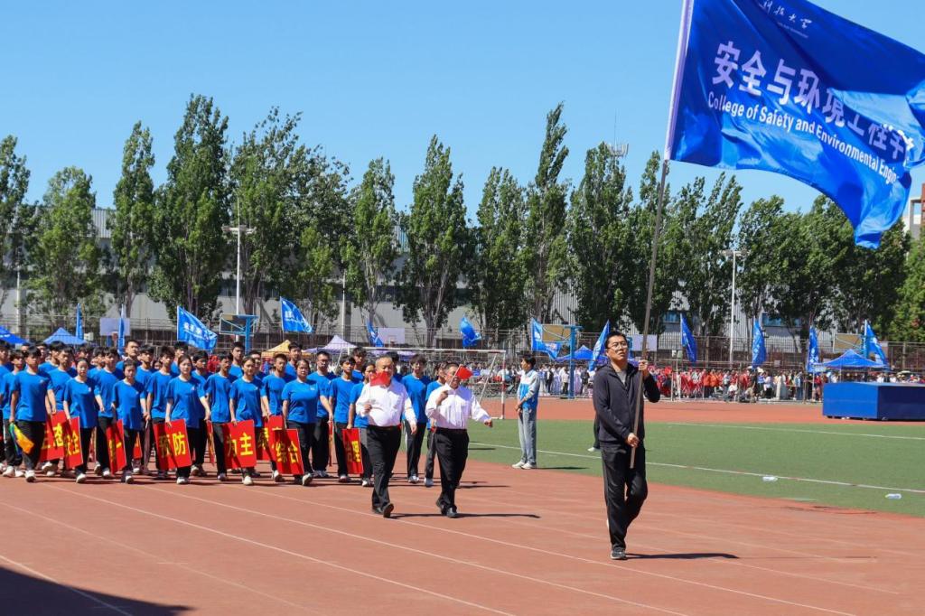 开幕式上,伴随着旋律激昂的《运动员进行曲》,bwin·必赢(中国区)官方网站-officialswebsi方队迈着整齐有力的步伐昂首阔步走过主席台。“安达天下,环系山水”,这是安全学子的人生态度;“安全第一,智慧环境,职业健康”,这是安全学子的铮铮誓言。 他们目光坚定、口号嘹亮,尽展蓬勃向上的风貌和斗志昂扬的精神,成为运动场上一道亮眼的风景线。