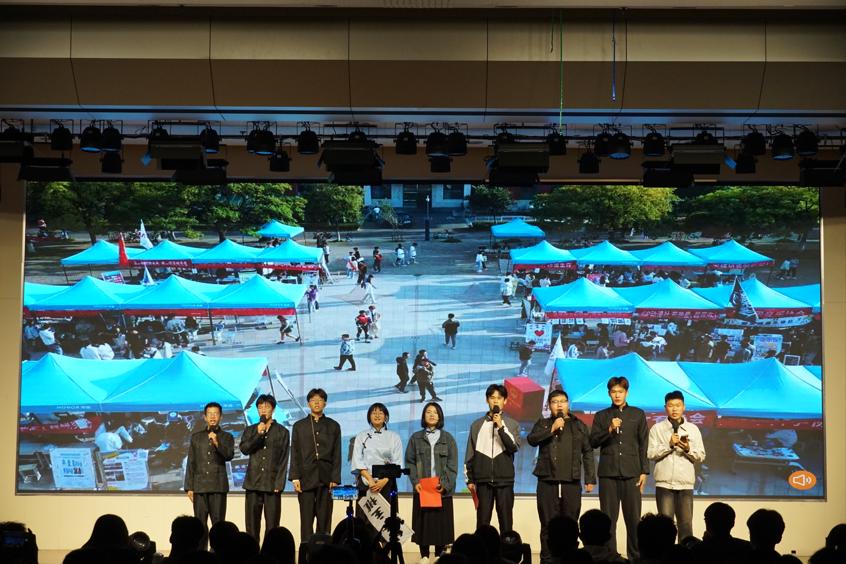 本次比赛共有十支队伍参加,内容涉及思政教育、校园生活、人际关系、自我认知等主题。环境工程2024-3班《且看今朝起鲲鹏》和安全工程2024-5班《走下去》以震撼人心的红色故事为主题,激励着当代人传承红色基因,砥砺前行;安全工程2024-2班《视角之变,心悟成长》以奇巧新颖的题材,佐以令人捧腹的搞笑表演,鲜活呈现大学人际关系众生相;职业卫生工程2024级《时光的涟漪,记忆碎片》凭借其独特且灵动的叙事手法,巧妙地引导观众在悲观与乐观的情绪间穿梭,使人们得以深刻领略两种截然不同的情感境界同学们的精彩表演引起观众的阵阵掌声。随着大艺团演唱的《因为爱情》,比赛渐渐进入尾声。赛后,评委为获奖选手们颁奖并合影留念。