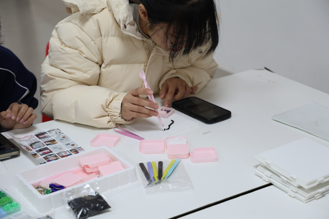 11月9日,bwin·必赢(中国区)官方网站-officialswebsi融媒体中心于GC4领才书院组织开展“指尖匠心,治愈时光”手工活动。活动以拼豆与钻石画为载体,引导同学们在沉浸式手工体验中提升专注力、激发创造力。同学们通过色彩搭配与细致工序,创作出一个个生动图案与唯美画面,在指尖流转中舒缓压力、收获成就感。
