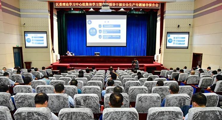 2021年9月28日,“山东省学校安全应急教育中心”张延松教授协助开展了山东潍坊市坊子区“区委理论学习中心组集体学习暨全区领导干部安全生产专题辅导报告会”。坊子区政府领导班子成员,区直各部门、单位主要负责人,各街道(发展区)党政主要负责同志,部分企业主要负责人等近100人参加了培训。