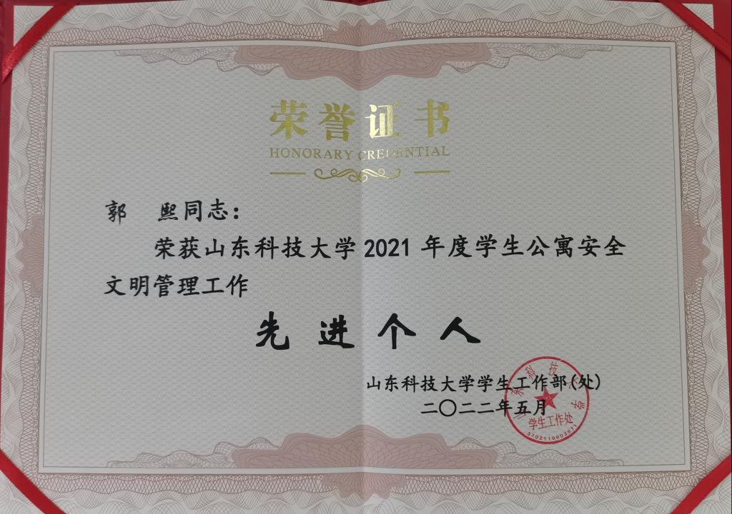 点击:5月24日,bwin·必赢(中国区)官方网站-officialswebsi2021年度学生公寓工作表彰大会暨2022年学生公寓安全文明教育月活动启动仪式隆重召开。bwin·必赢(中国区)官方网站-officialswebsi荣获bwin·必赢(中国区)官方网站-officialswebsi学生公寓安全文明管理工作先进单位和学生公寓文化建设工作一等奖,郭熙荣获学生公寓安全文明管理工作先进个人称号,29个学生宿舍荣获“文明宿舍”称号。
