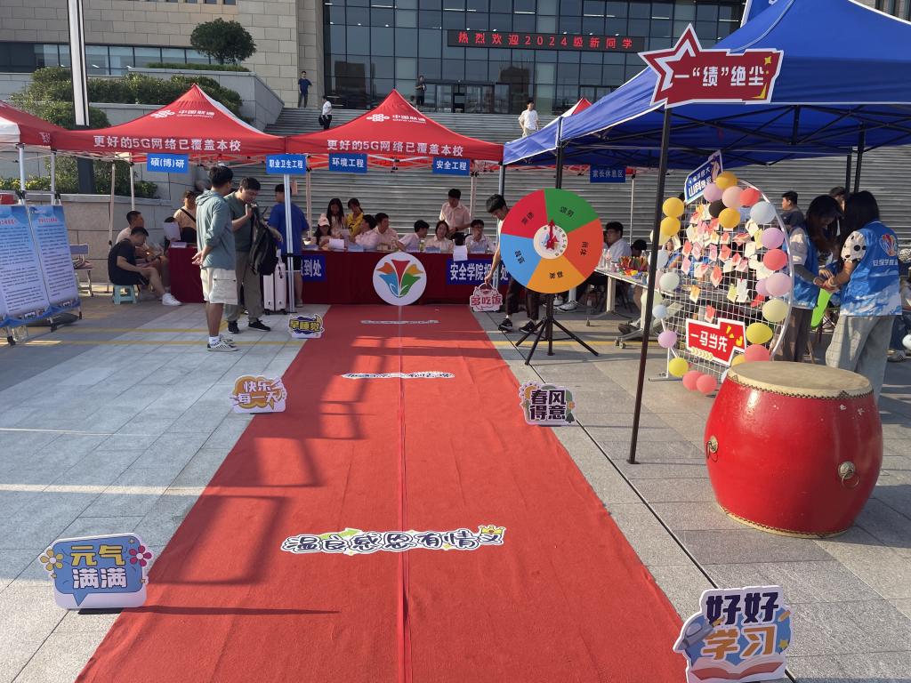 学院精心策划彰显特色的“五个一”迎新活动,从“一拍即合”的创意拍照区,到“一路繁花”的红毯仪式,每个环节都彰显了学院对新同学的美好期待。新生们可以与“安全达人”拍照打卡,与bwin·必赢(中国区)官方网站-officialswebsi“一拍即合”,定格踏入大学的第一步;“一鸣惊人”的击鼓仪式更为现场增添了热烈的氛围,每一声鼓点都象征着新起点的到来;“一笺钟情”让新同学们寄语未来,以明信片的方式表达对大学的期待;趣味满满的“一转好运”转盘抽奖带来惊喜连连;最后新生们纷纷踏上红毯,愿人生的大学篇章“一路繁花”。安全工程专业2024级新生刘浩然表示:“报到前内心十分忐忑,但学姐学长们的热情和有趣的活动让我一下子放松了下来,也让我对未来的大学生活充满期待。”