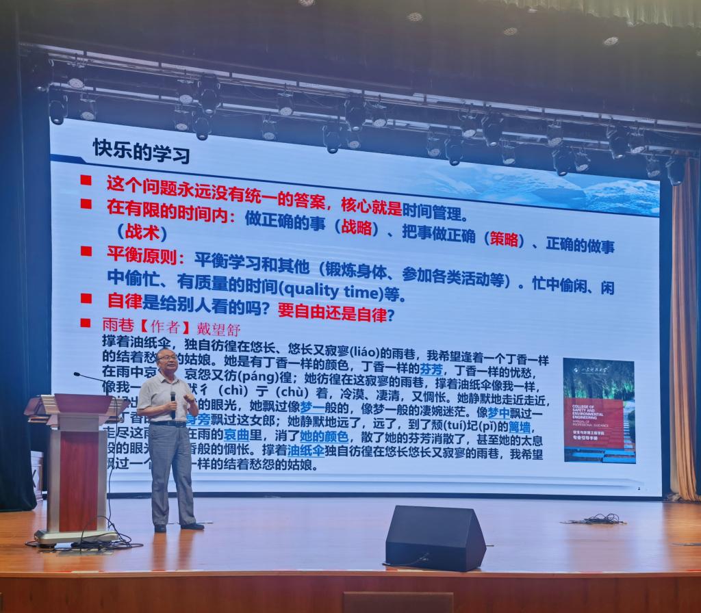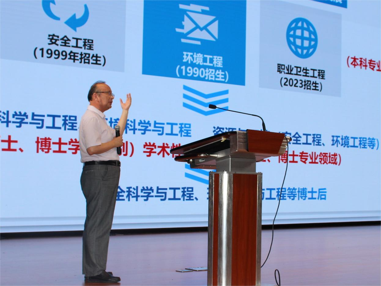 程卫民结合党的二十大报告和党的二十届三中全会精神中关于教育、科技、人才一体化的重要论述,带领同学们深刻理解教育、科技、人才在中国式现代化中的基础性、战略性支撑作用,勉励同学们在新的学习生涯中,把准人生航向,为中国式现代化贡献青春力量。程卫民从学院整体概况、学科建设、创新创业与国际交流、如何度过快乐的学习时光四个方面具体讲述。他强调,学院致力于打造“本-硕-博”一体化、无缝衔接的科研学习生态系统;汇聚了一支由教学经验极为丰富、在各自领域内学术造诣深厚、充满激情与创新的教授与讲师所构成的精英团队;秉持开放合作的理念,与全球多所知名高等学府建立了稳固而长远的合作关系。学院始终立足学科发展前沿,积极融入黄河国家战略等国家重大战略。希望同学们从学业突破、职业发展、社会贡献、人生理想等方面及早做好规划,坚持深耕苦读、勇于创新,为构建更加安全、健康、绿色的社会环境贡献自己的力量。