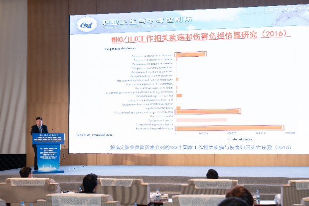 在主题交流环节,中国工程院院士袁亮、中国疾病预防控制中心职业卫生与中毒控制所所长孙新、日本国立国际医疗研究中心主任大曲贵夫、日本九州大学副理事清水周次、韩国国立中央医疗中心感染病科主任金佳恩等高级别专家学者分别聚焦粉尘防控、远程医疗、传染病防护等焦点领域做主旨报告,就各自在职业卫生健康领域的研究成果与实践经验进行了精彩分享。