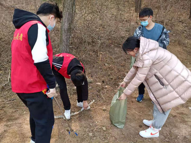 随后,志愿服务队领队将打扫工作进行了有序分工,以避免工作的盲目性,提高工作的效率与质量。初春的青岛气温虽低,但大家工作的热情却丝毫不受寒冷天气的影响,铲除垃圾、清理落叶,志愿者们都表现出不怕脏、不怕累的精神,每个人都干劲十足。经过大家的共同努力,居委会林区及道路焕然一新。