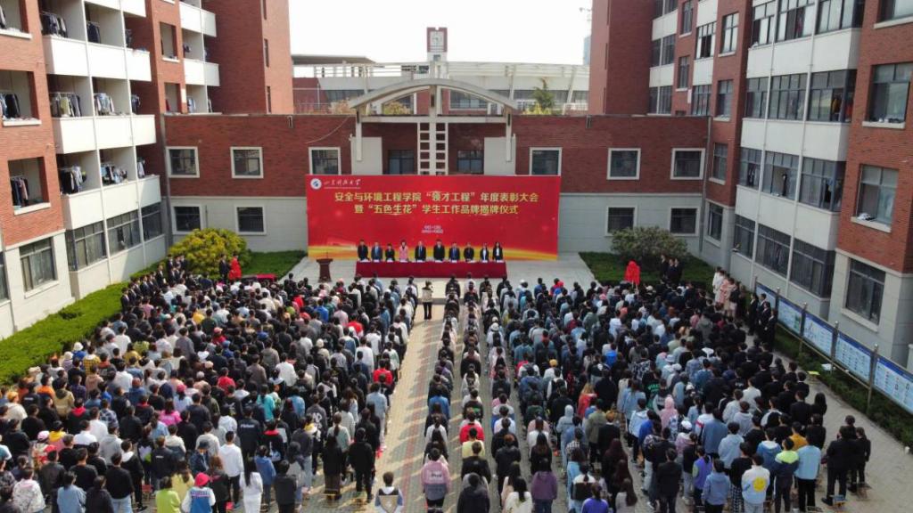 2021年4月10日上午,安全与环境工程学院在学子广场隆重召开2020年度表彰大会暨“五色生花”学生工作品牌揭牌仪式。校团委书记尹立明学生工作处副处长孔环学院党委书记张恩生学院党委副书记兼副院长王建友,学院副院长刘音、聂文曹晓强及团委全体老师出席大会学院全体学生参会。会议由学院团委书记潘刚主持。