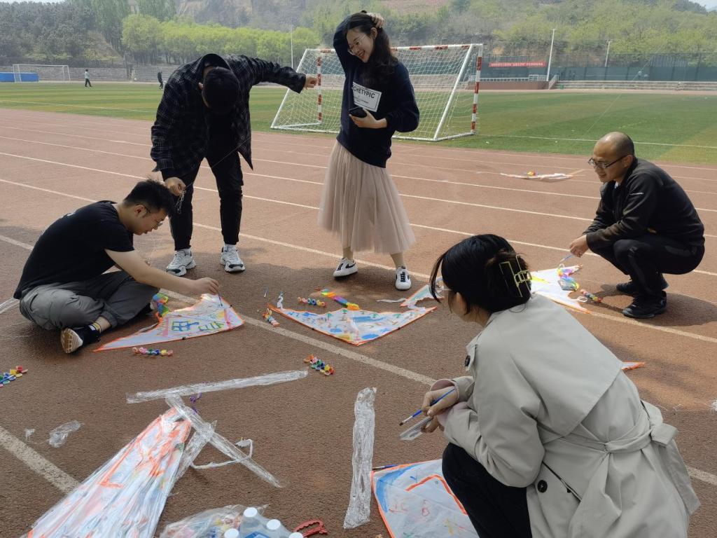 团支部成员自行分组,所有的风筝都由大家自己动手绘制,有的书写了自己的愿望,有的画出了自己的梦想,小小的风筝上涂满了大家的梦想和希望,每个风筝都独特而精致。随着团支部书记的一声令下,团员们迫不及待的放飞手中的风筝,飞快的奔跑着,大家相互协作,默契配合。虽然天气较热,但大家兴致高昂,一会的工夫,五颜六色的风筝飘舞在空中,自由地飞翔。大家脸上都洋溢着灿烂的笑容,沉浸在欢乐海洋中,尽情地享受风筝带来的无限乐趣。