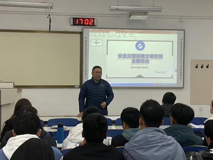 点击:为响应青岛市争创文明典型城市、学校创建文明校园的综合要求,贯彻落实文明校园建设实施方案,11月10日,安全工程2020级3班在s1-217召开“创建文明校园,争做文明师生”主题班会。学院党委副书记兼副院长王建友、班主任刘义鑫参加会议,辅导员满天雷主持班会。
