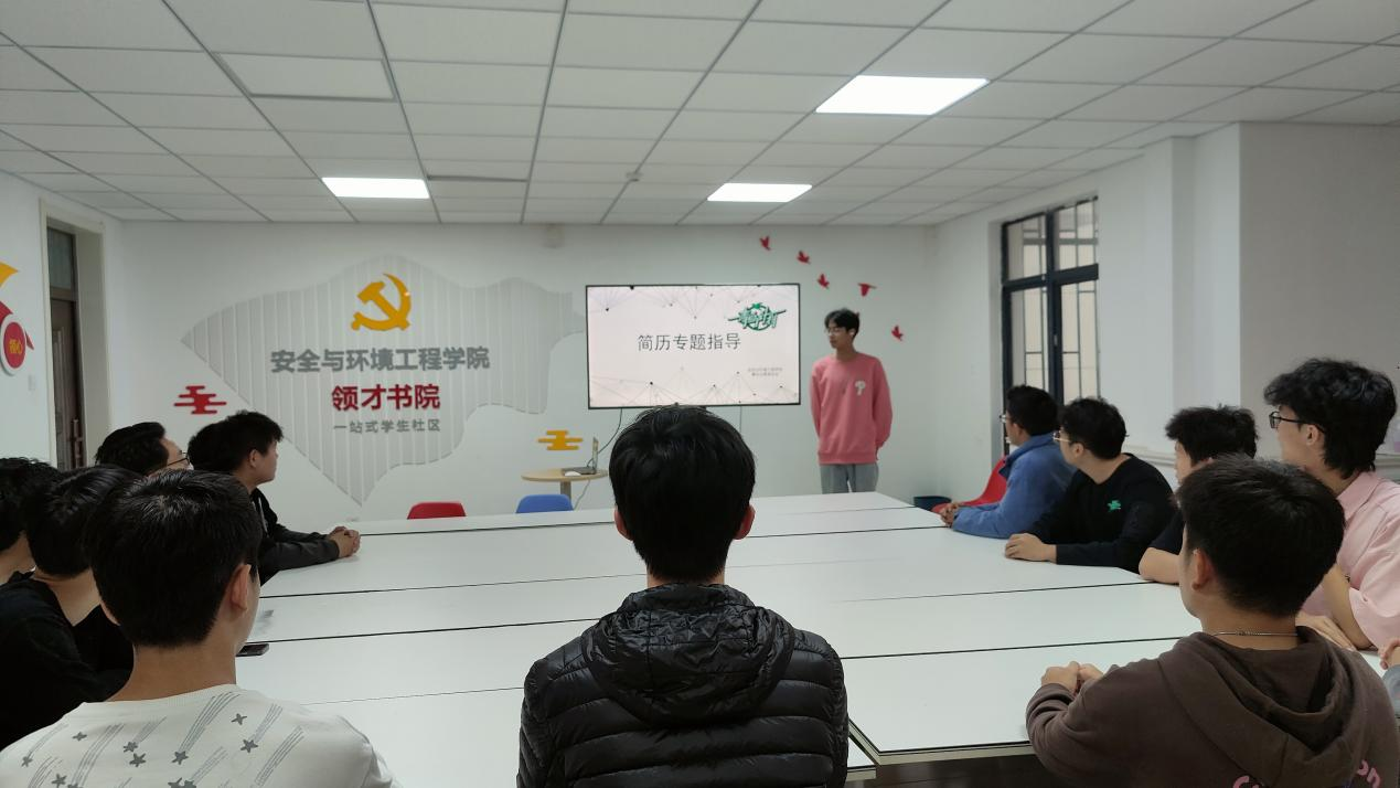 在简单说明简历的重要性之后,他向大家介绍了简历的基本构成及主要元素。个人资料、学业有关内容、本人经历荣誉和成就、求职愿望、个人获奖证明等等作为简历中必不可少的部分,简历是一个企业了解求职者的重要渠道,一般用人单位觉得求职者的简历合适了才会约见面聊,他很好的起到了一块敲门砖的作用。接着,他通过几个优秀简历模板向大家介绍了重要部分的书写以及注意事项。在会议的最后,他组织大家在半个小时时间内对于自己的简历进行了简单构思与想法分享。