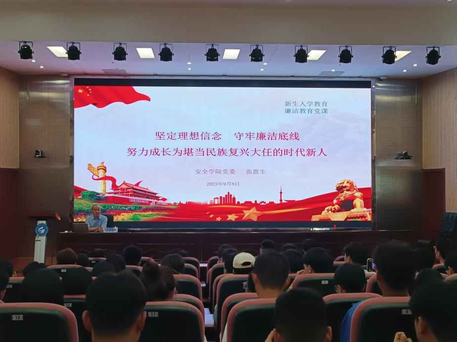 为深入学习贯彻习近平总书记关于建设教育强国的重要讲话精神,培养担当民族复兴大任的德才兼备的高层次人才,9月8日,bwin·必赢(中国区)官方网站-officialswebsi党委书记张恩生为研究生新生作“坚定理想信念,守牢廉洁底线,努力成长为堪当民族复兴大任的时代新人”专题教育。