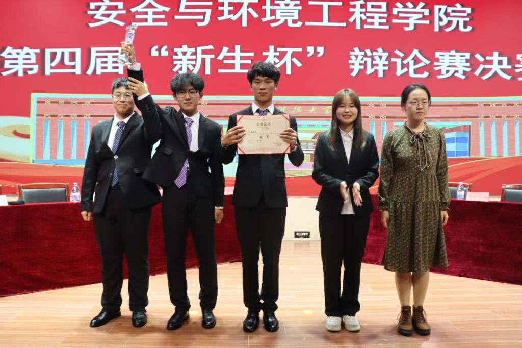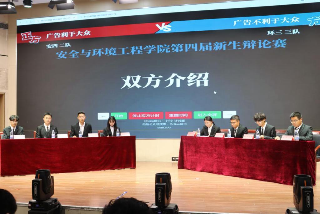 决赛由环境工程二班二队、环境工程三班一队、安全工程四班二队、环境工程三班三队四支队伍两两对决,由所获分数排名决出胜者。两支队伍就“广告利于大众消费VS广告不利于大众消费”和“年轻人该把兴趣当事业VS年轻人不该把兴趣当事业”两个辩题展开激烈讨论。比赛一开始,整个赛场变得紧张激烈,随着正反两方的激烈驳辩,辩论赛进入高潮。面对反方的引经据典、旁征博引,正方辩手们巧用四两拨千斤的方法,一次一次化险为夷,赢得了在场同学的阵阵掌声。最终,环二二队获得冠军,环三一队、环三三队分获亚军、季军。环二二队的马溯源荣获最佳辩手。