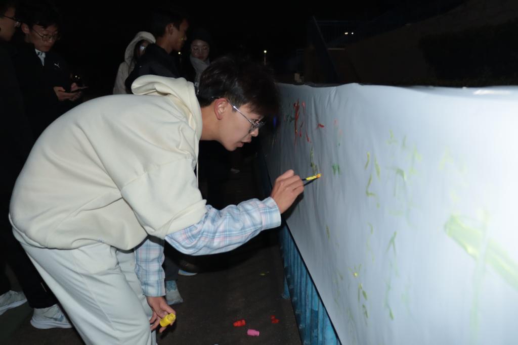 同学们用荧光涂料精心装扮,摩拳擦掌,蓄势待发。随着台上鸣笛声起,同学们如彩色的洪流,冲出起跑线,在夜色中挥洒汗水,享受运动的快乐。寒冷的天气难掩同学们的热情,青春的身影奔跑在校园里,成为一道靓丽的风景。奔跑的过程中,同学们互相鼓励,团结并肩,携手共进。沿途师生纷纷呐喊助威,整个校园一片欢腾。志愿者等候在各个节点引导路线、提供能量补给,一路为同学们保驾护航。