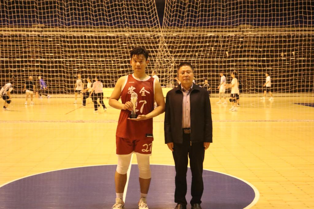 随着裁判的一声哨响,两队展开了激烈的争夺。比赛中,球员们奋力拼搏,进攻犀利、防守严密,比分交替上升,场面异常激烈。观众席上掌声雷动,欢呼声此起彼伏,气氛十分热烈。20级安全队伍中的16号尹思源在一次次的进攻中主动抢占有利位置,在拿到球权后果断出手为队伍贡献了一次次进球。21级硕研队也不甘示弱,其中23号韩淮安依靠身体优势和控球能力,不断在内线进攻,在一次次的一打多的局面下依旧为队伍贡献进球,将比分死死咬紧。经过四节的苦战,20级安全队凭借着稳定的发挥和关键时刻的出色表现,以47:45的比分赢得了比赛的胜利,捧起了冠军奖杯。2020级葛信诚荣获最佳球员奖。