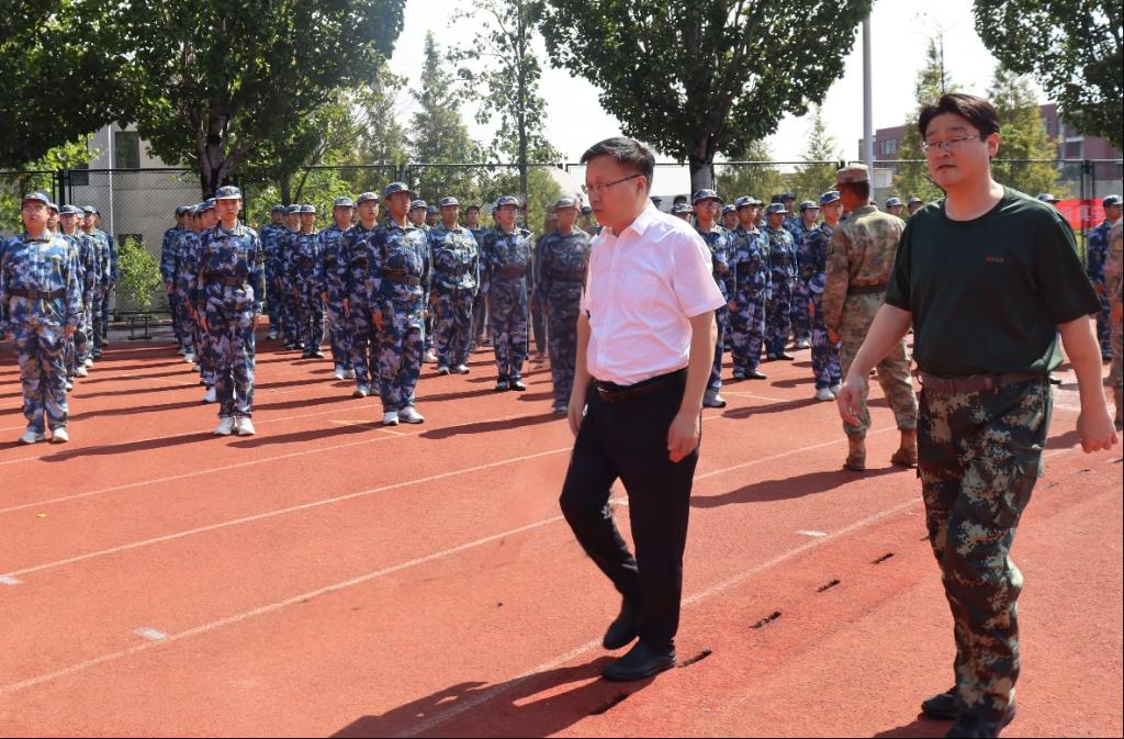 9月16日上午,bwin·必赢(中国区)官方网站-officialswebsi2025级本科生新生在高地操场列队集结,步履铿锵、斗志昂扬。校党委书记王君松带队亲临军训现场指导检查工作,党委办公室(学校办公室)主任董桂刚、学生工作处(部)处(部)长尹立明陪同视察。