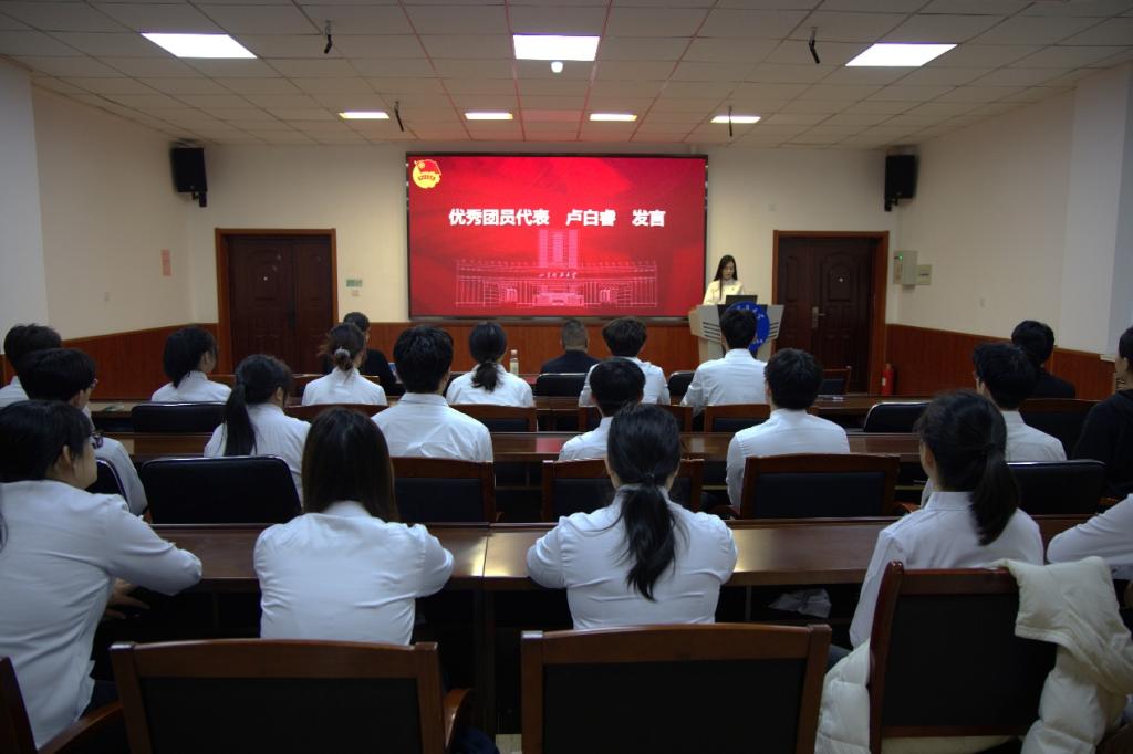 安全工程2023-1班卢白睿作为优秀团员代表向组织汇报了入团以来的自身成长,在团组织的鼓励与支持下,在学习科创、文体活动、社会实践等方面均取得优异成绩,并向新发展团员提出传承红色基因、紧跟党组织步伐在中国式现代化征程上挺膺担当,为民族复兴贡献青春力量的倡议。