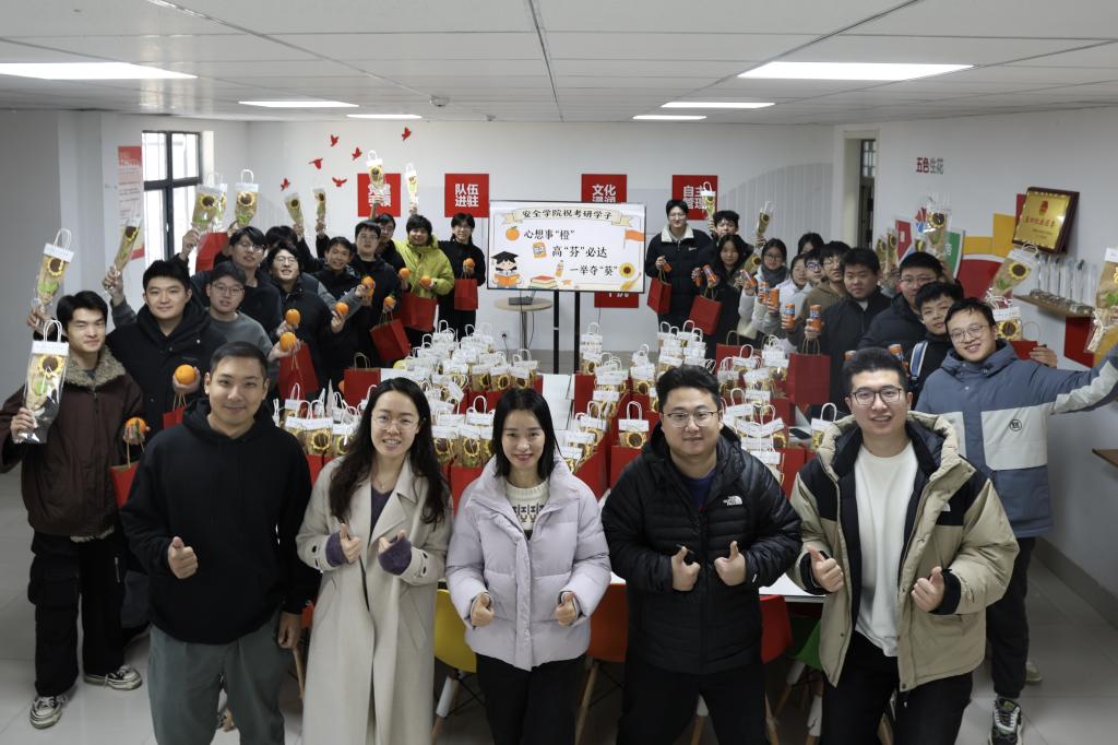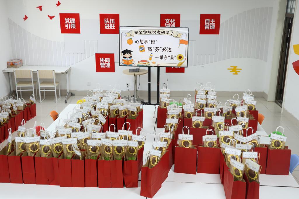 张娜鼓励同学们在最后冲刺阶段要顶住压力、保持状态、全力冲刺。她特别叮嘱大家要注意调节情绪,合理安排作息,以饱满的精神状态迎接挑战。“学院永远是同学们最坚实的后盾,如果遇到问题或困惑,随时可以找老师们沟通。”这番温暖的话语让在场的考研学子们倍感鼓舞。一份份装满祝福的“考研加油包”摆成“上岸”的形状,表达了学院全体师生对考研学子们的真心祝愿。收到礼物的同学们纷纷表示,这份在冲刺时刻送抵的“加油包”让他们在寒冷的冬日里感受到了来自学院的浓浓温情。