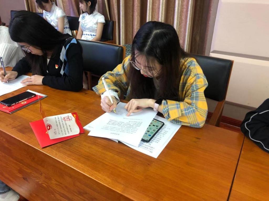 “一片深情兴教育、脚踏实地干事业”“爱岗敬业、履职尽责,自觉加强党性锻炼”“增强服务意识,积极参加校内外志愿活动,结合党史学习教育真正位群众办实事、做奉献”……一次落款,深沉隆重;一份承诺,永不褪色,这是党员同志们在认真签署党员承诺书。