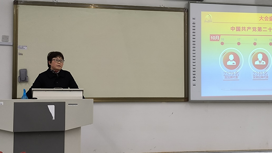 刘音副院长首先以大会的基本情况为开端,讲解了本次大会的代表构成、主要任务以及主要议程;刘音老师通过引用本次大会习近平总书记的讲话,向大家阐明了本次大会召开的深刻意义,为新时代新征程党和国家事业发展、实现第二个百年奋斗目标指明了前进方向、确立了行动指南;而后,刘音老师为同学进行了报告解读,从过去五年的工作和新时代十年的伟大变革、马克思主义中国化时代化新境界、新时代新征程中国共产党的使命任务等等方面进行了详细的剖析,使同学对本次大会的内涵有了更全面的认识;在本次班会的最后,刘音老师强调,党的二十大擘画的宏图盛景,是国家的、民族的、人民的,更是青年的。希望同学们将个人成才梦融入百年科大梦和中华民族伟大复兴的中国梦,铁心向党有理想,铁血报国敢担当,铁肩对标能吃苦,铁手创业肯奋斗,奋进新征程、绽放新青春、展现新作为。