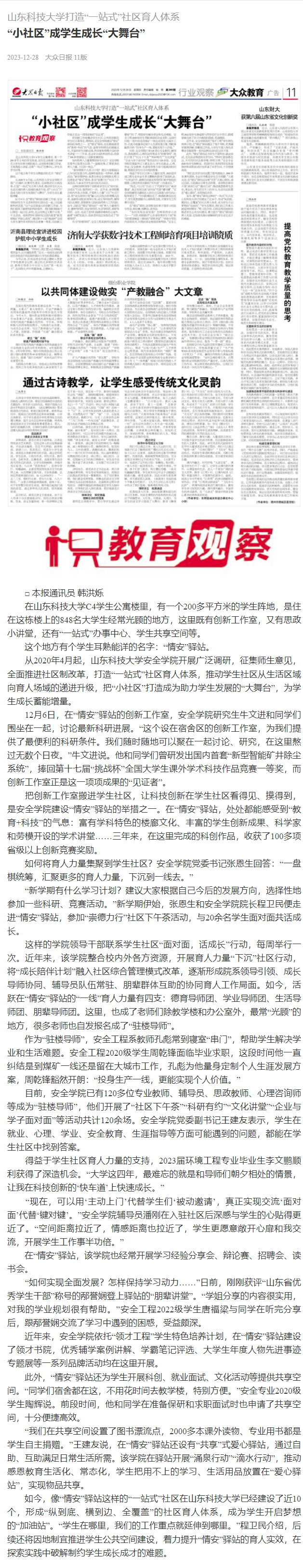 “小社区”成学生成长“大舞台”