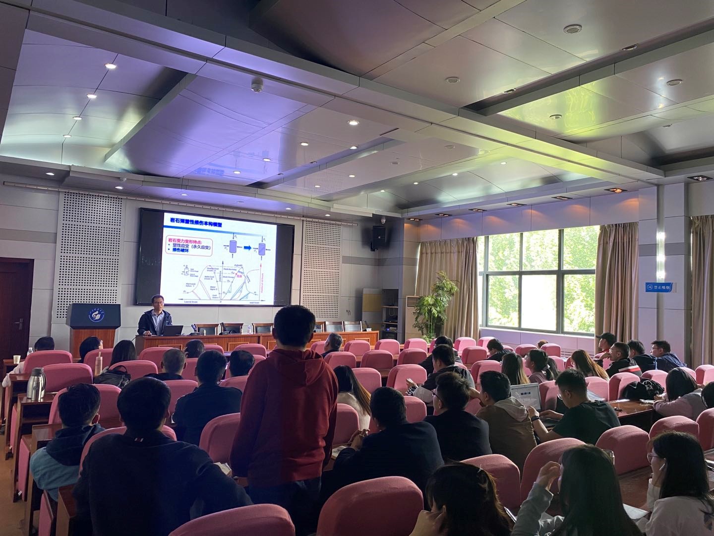 报告会上,马述起教授围绕岩石本构关系、蠕变模型、节理数值模型构建、锚固节理力学模型探索了岩体的变形机理及其控制技术,讲述了地下空间资源的开发利用过程中地下岩体在长期地质作用下所形成含不同尺度结构面的复杂地质体,通过分析开挖卸荷作用下节理裂隙力学性能和宏观的逐步劣化降低地下工程灾害发生的频率。