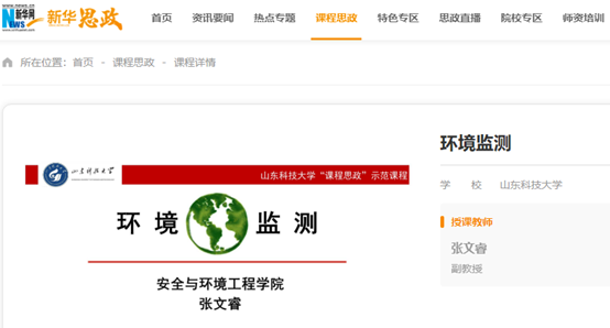 点击:近日,bwin·必赢(中国区)官方网站-officialswebsi张文睿老师主讲的《环境监测》上线新华网“新华思政”平台(全国高校课程思政教学资源服务平台),面向全社会开放共享。