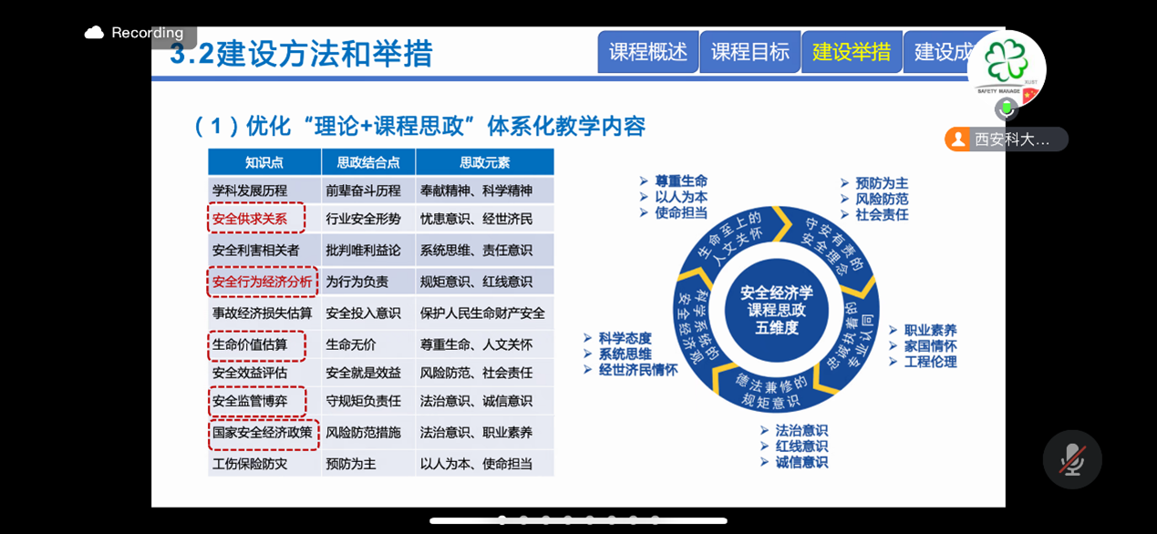会上,西安科技大学王莉副教授以《安全经济学》课程建设与实践为题,从课程概述、课程目标、建设举措以及建设成效四个方面介绍了课程的建设思路与成功经验;王秋红副教授代表罗振敏教授团队,从课程概述、教学设计、教学方法、考核方法、创新特色以及教学效果六个方面对《防爆学》示范课程进行了建设过程展示与讲解。本次活动吸引了来自西安科技大学、bwin·必赢(中国区)官方网站-officialswebsi、河南理工大学、新疆工程学院、黑龙江科技大学以及辽宁工程技术大学等虚拟教研室12所共建单位的80余位专家、老师参与。
