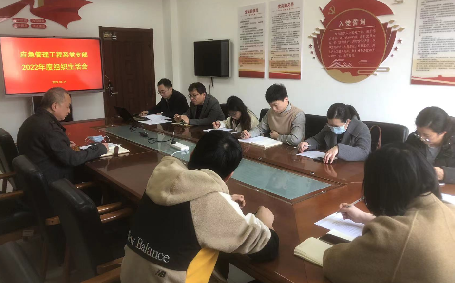 2023-03-16按照学校、学院党委工作要求,应急管理工程系党支部于3月14日在J4-309会议室组织召开了2022年度组织生活会,会议由党支部书记倪冠华主持,学院党委书记张恩生及全体教师党员参加了会议。会议紧扣主题,倪冠华首先代表党支部向全体党员总结汇报一年以来的党支部工作,通报了党支部委员会查摆问题情况,接受党员评议,并就自己在政治思想、理论学习和实际工作中存在的不足进行了深刻反思和自我批评,剖析了问题产生的原因,并提出...